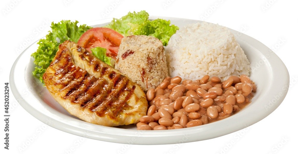 Acompanha arroz, feijão, farofa, batata frita, macarrão alho e óleo e salada.., coca-cola 600ml