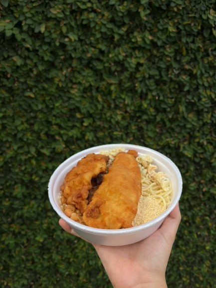 Acompanha arroz, farofa, Frango Á Milanesa, Macarrão alho e óleo, feijão